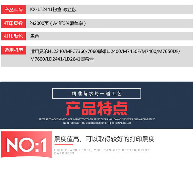 凱欣政企版 KX-LT2441粉盒適用兄弟HL2240/MFC7360/7060聯(lián)想LJ2400/M7450F/ M7400/M7650DF/M7600/LD2441/LD2641 全國(guó)統(tǒng)一價(jià):136元