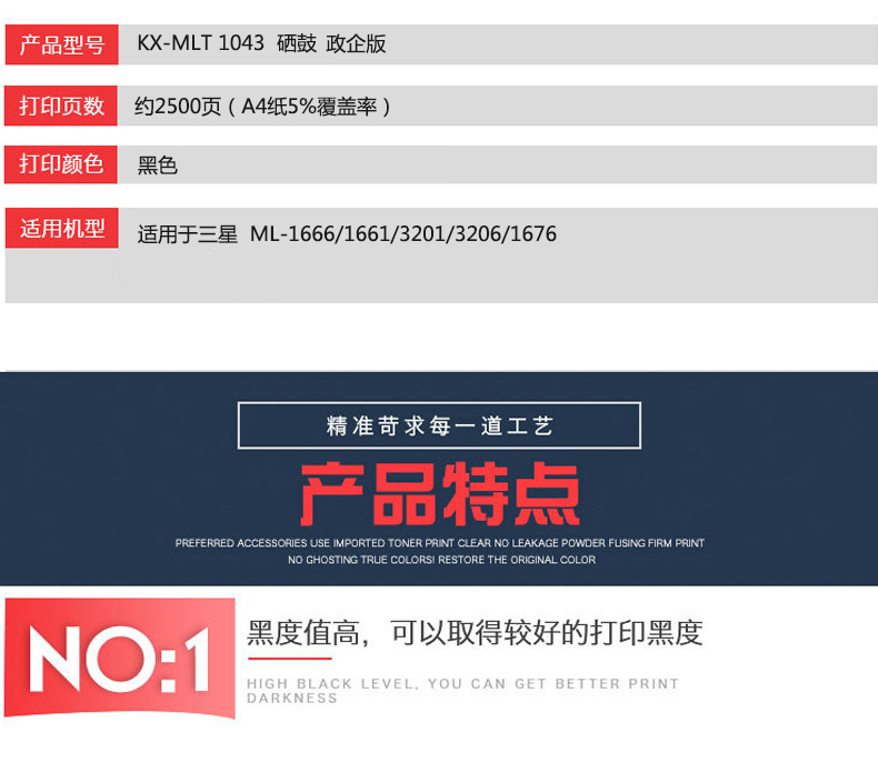 凱欣政企版 KX-MLT 1043 硒鼓 適用于三星 ML-16661661320132061676 全國統(tǒng)一價:160元