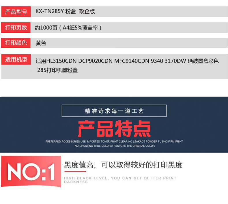 凱欣KX-TN285Y 適用HL3150CDN DCP9020CDN MFC9140CDN 9340 3170DW 硒鼓墨盒彩色 285打印機(jī)墨粉盒 全國統(tǒng)一價(jià):268元